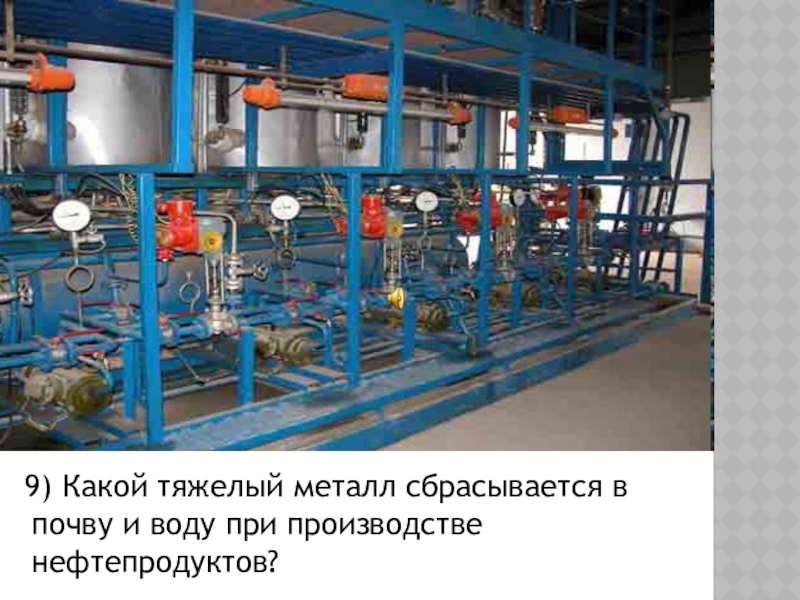 9) Какой тяжелый металл сбрасывается в почву и воду при производстве нефтепродуктов?