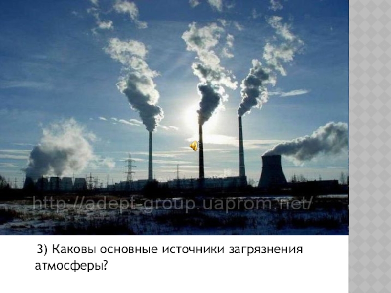 Слайд 8 3) Каковы основные источники загрязнения атмосферы?