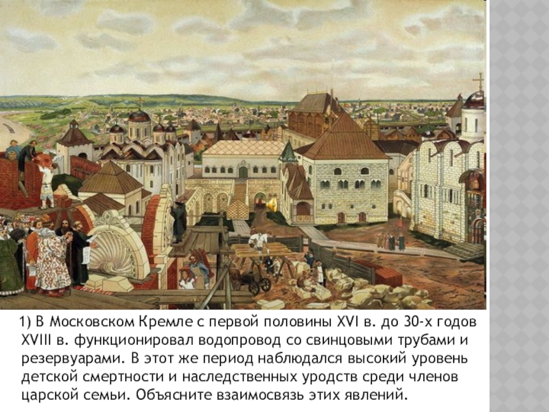 до 30-х годов XVIII в. функционировал водопровод со свинцовыми трубами и резервуарами. В этот же период наблюдался высокий уровень детской смертности и наследственных уродств среди членов царской семьи. Объясните взаимосвязь этих явлений.
