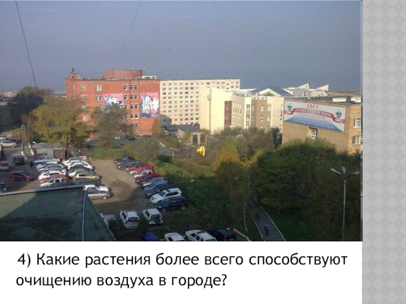 Слайд 9 4) Какие растения более всего способствуют очищению воздуха в городе?