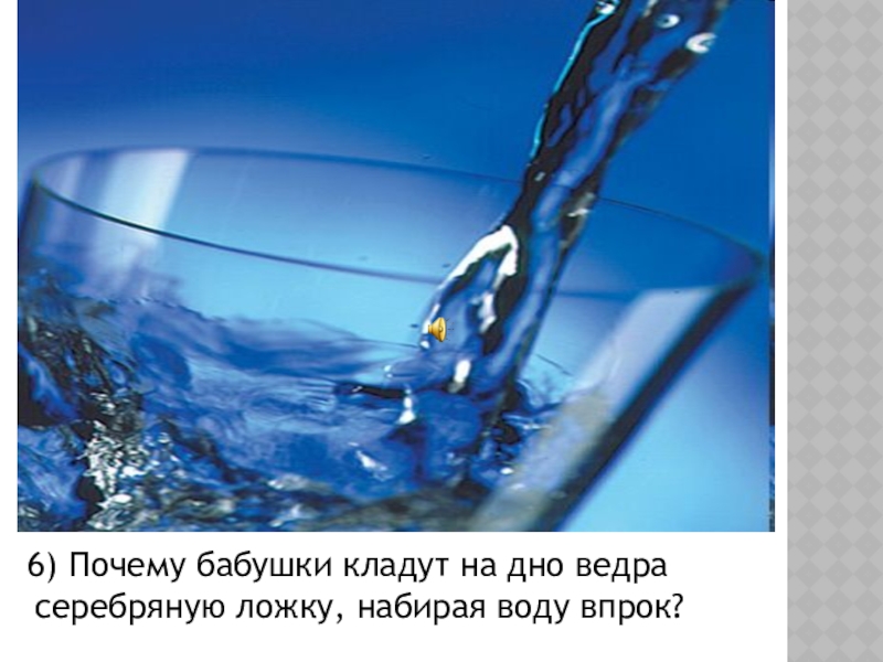 Слайд 11 6) Почему бабушки кладут на дно ведра серебряную ложку, набирая