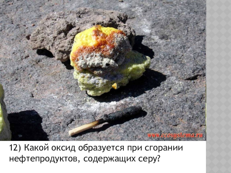 Слайд 17 12) Какой оксид образуется при сгорании нефтепродуктов, содержащих серу?