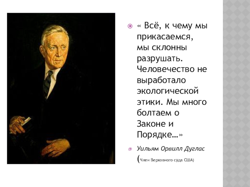 Слайд 18« Всё, к чему мы прикасаемся, мы склонны разрушать. Человечество не