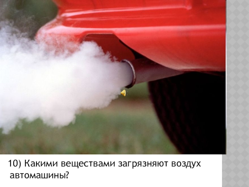Слайд 15 10) Какими веществами загрязняют воздух автомашины?