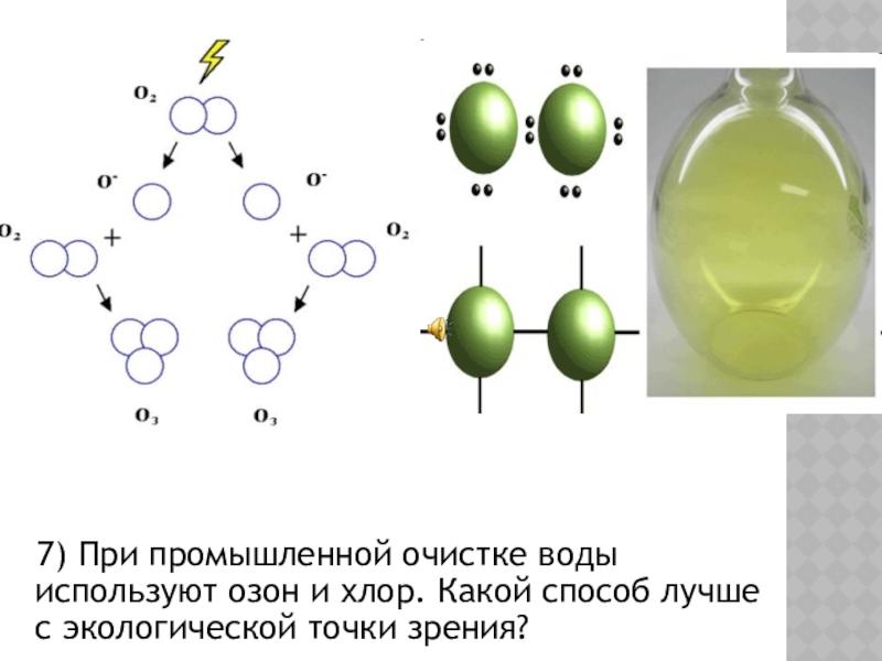 7) При промышленной очистке воды используют озон и хлор. Какой способ лучше с экологической точки