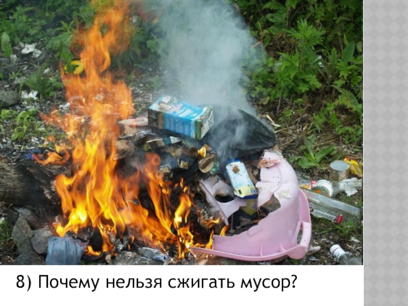 Слайд 13 8) Почему нельзя сжигать мусор?