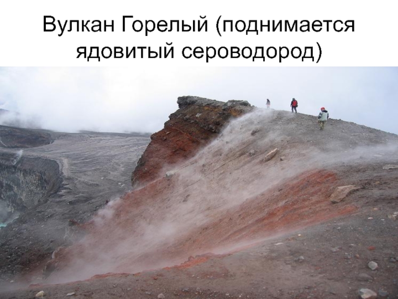 Слайд 10Вулкан Горелый (поднимается ядовитый сероводород)