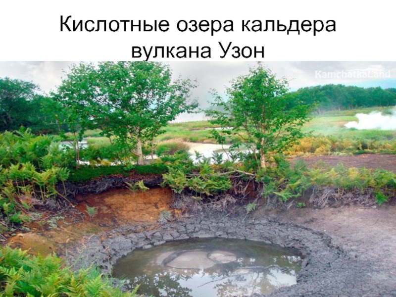 Слайд 11Кислотные озера кальдера вулкана Узон
