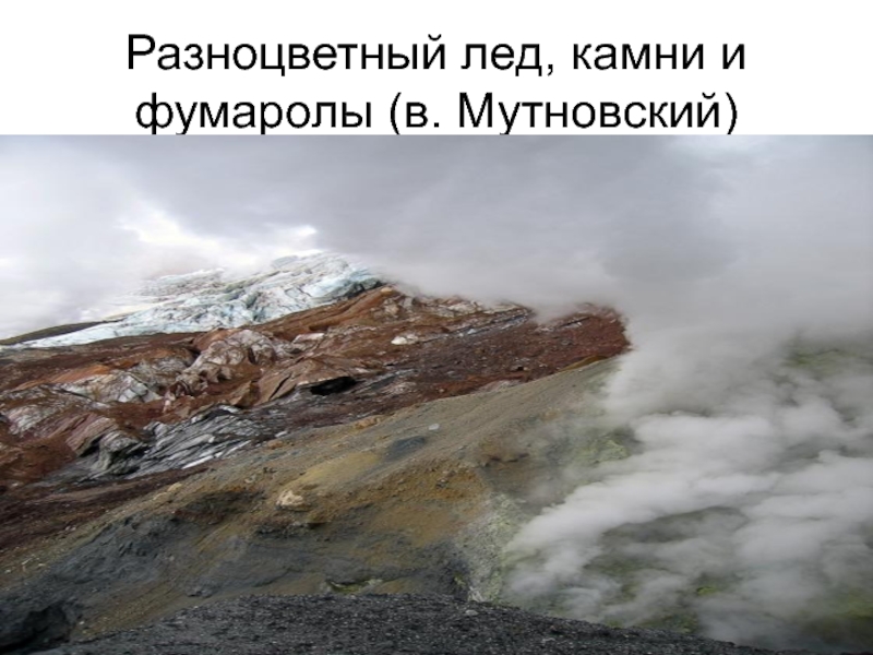 Слайд 13Разноцветный лед, камни и фумаролы (в. Мутновский)
