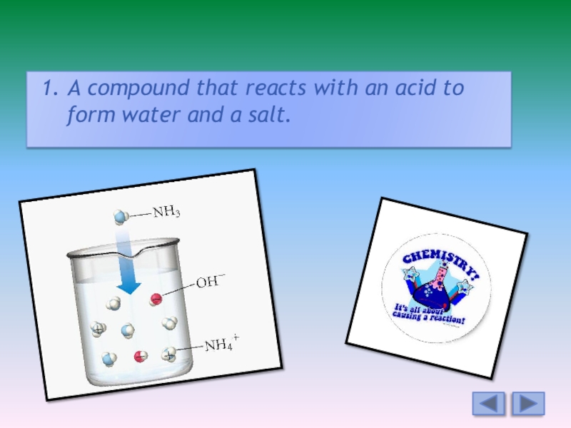 Слайд 121. A compound that reacts with an acid to form water