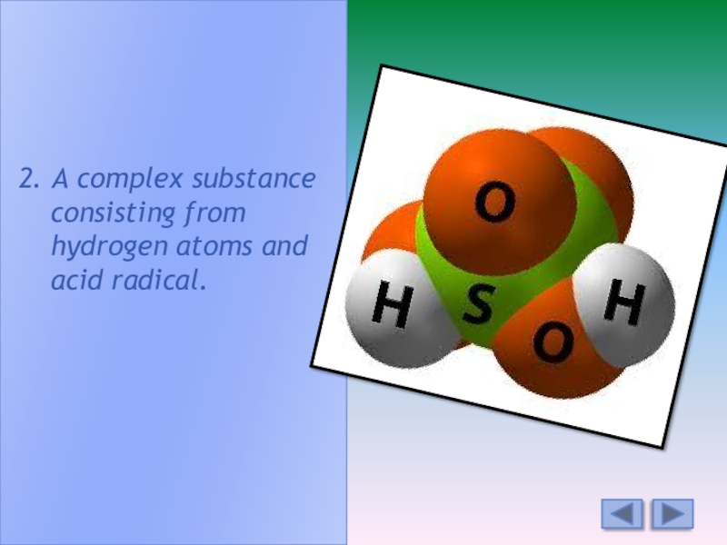 2. A complex substance consisting from hydrogen atoms and acid radical.