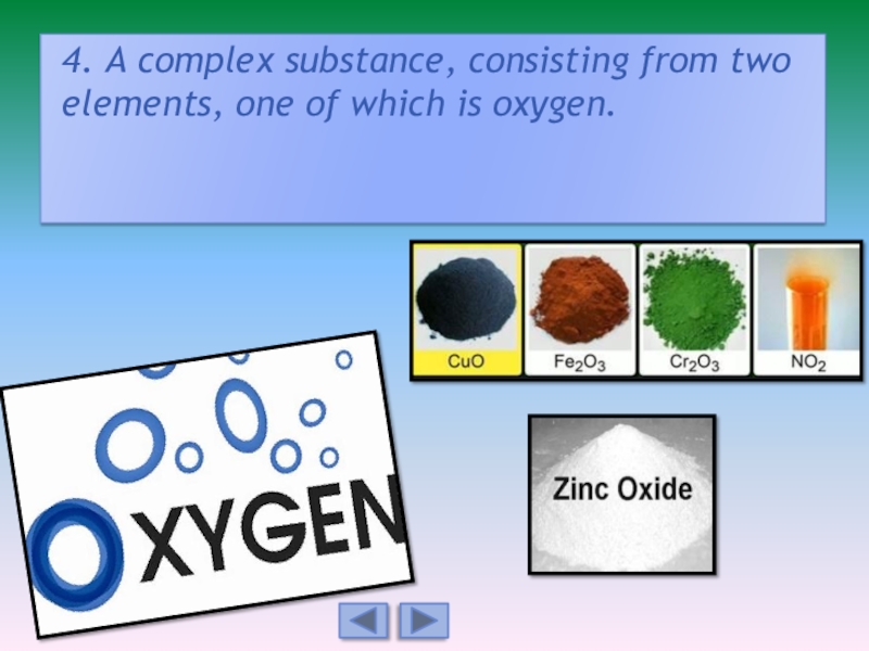 4. A complex substance, consisting from two elements, one of which is oxygen.