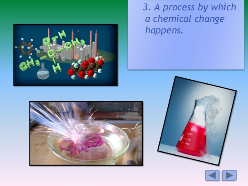 3. A process by which a chemical change happens.