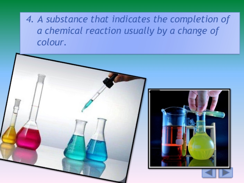 4. A substance that indicates the completion of a chemical reaction