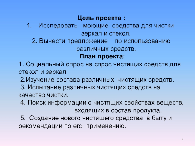 2.Изучение состава различных чистящих средств.