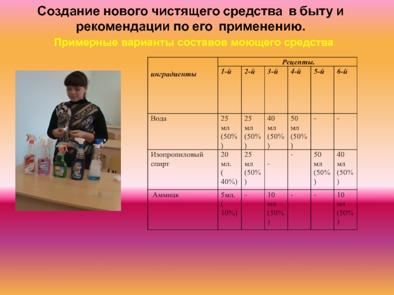 5. Создание нового чистящего средства в быту и рекомендации по его применению.
