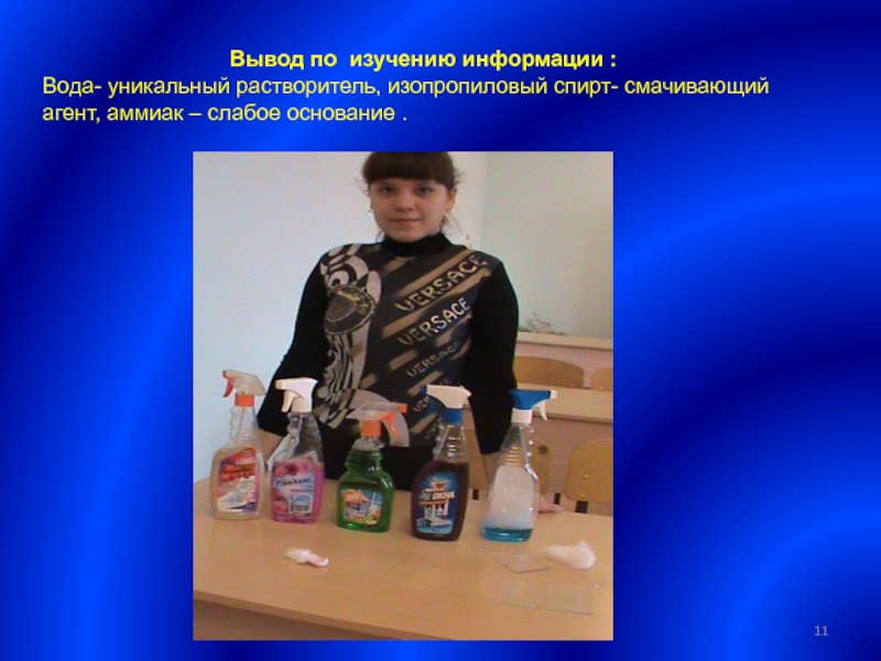 хорошо удаляют загрязнения. Значит чистящие свойства веществ зависят от содержания в них аммиака.