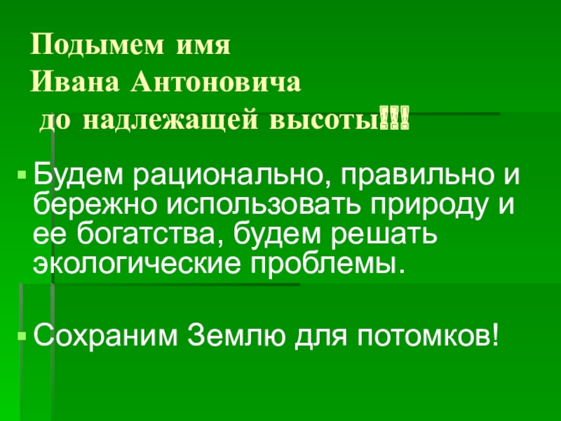 использовать природу и ее богатства, будем решать экологические проблемы.