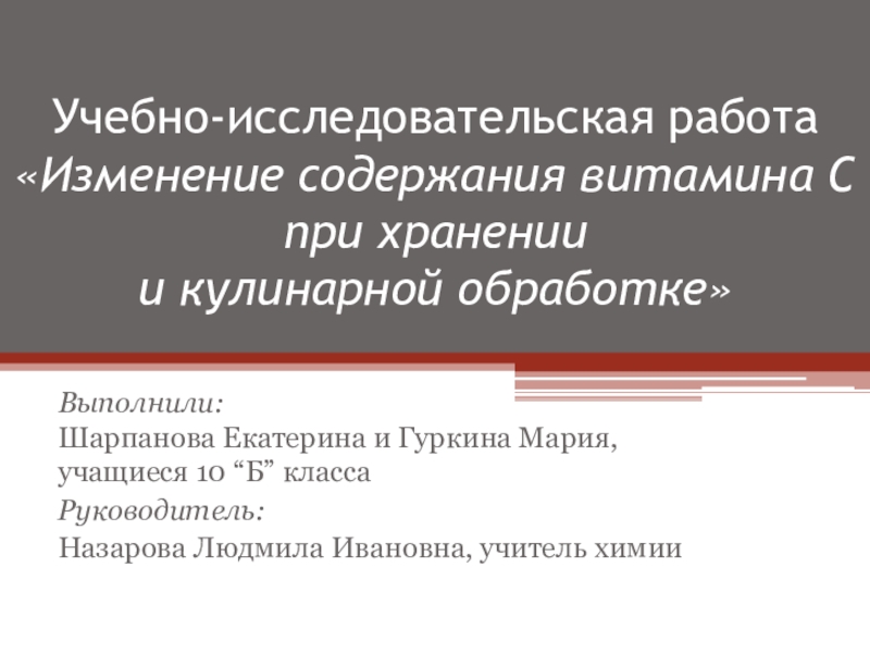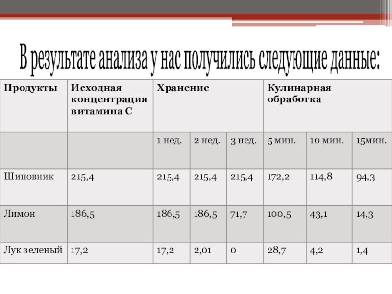определить возможные сроки хранения наиболее содержащих витамин С продуктов
