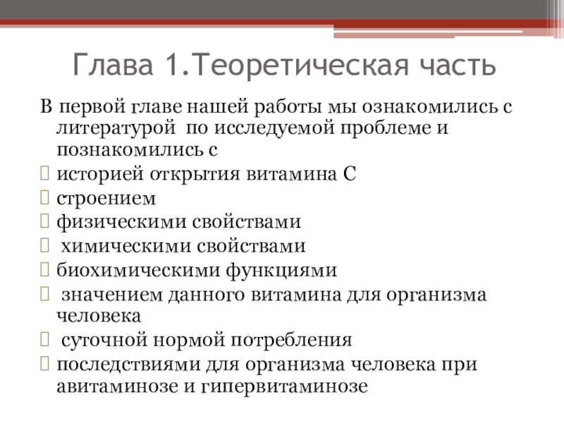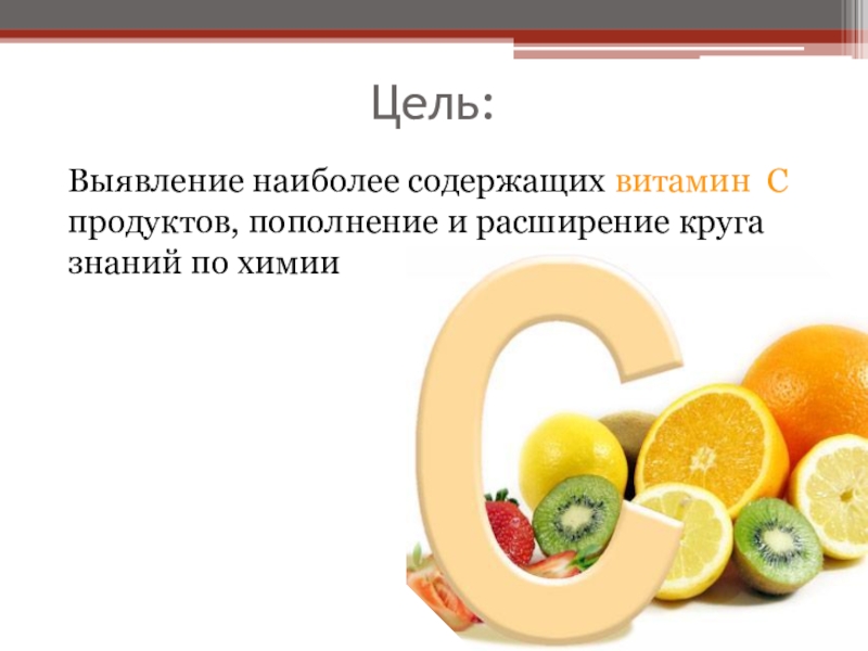 Выявление наиболее содержащих витамин С продуктов, пополнение и