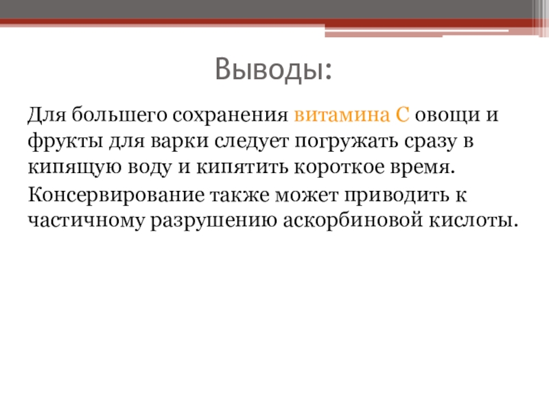 Консервирование также может приводить к частичному разрушению аскорбиновой кислоты.