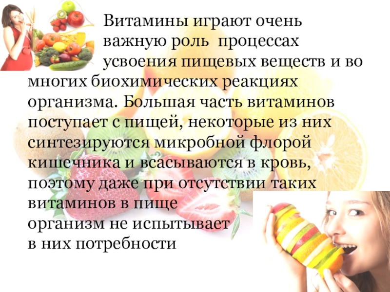 количествах, поэтому человек нуждается в постоянном поступлении их с пищей. Это в особенности относится к витамину C