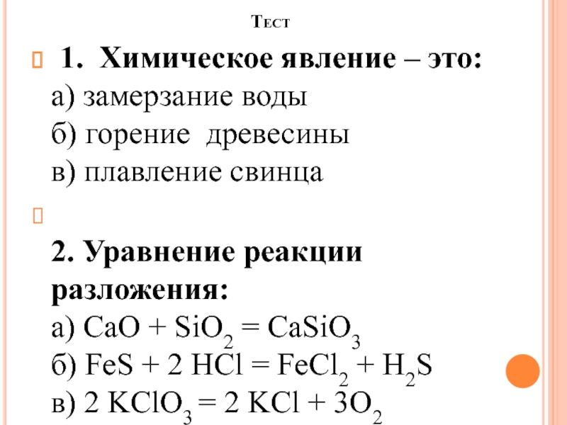 2. Уравнение реакции разложения: