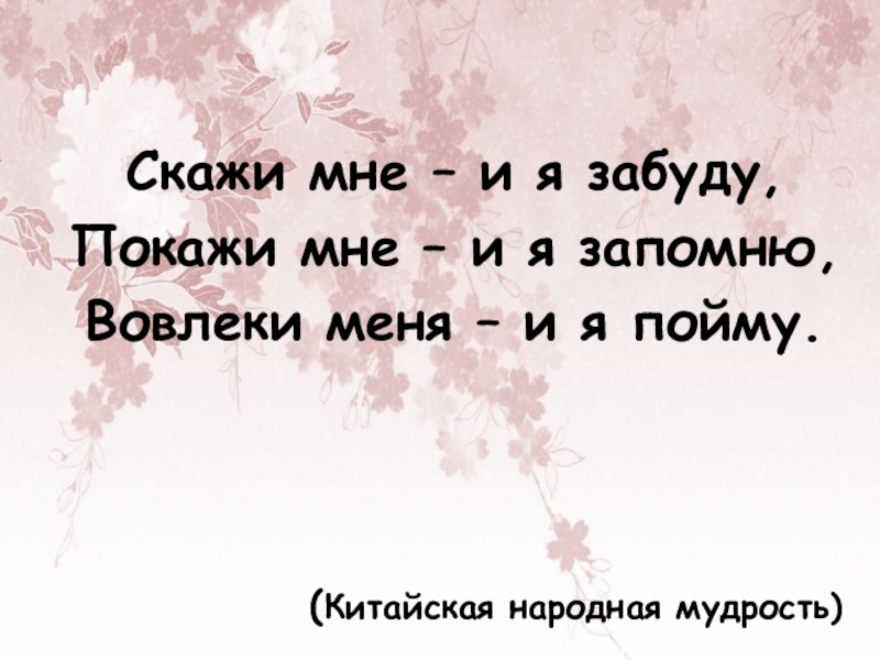 Скажи мне – и я забуду,Покажи мне – и я запомню,Вовлеки меня – и я пойму.(Китайская народная