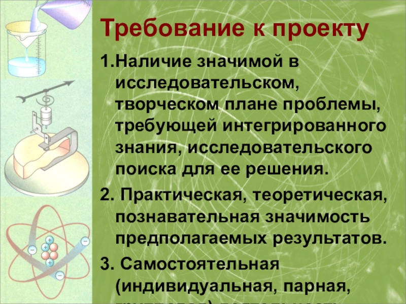 1. Необходимо наличие социально значимой задачи (проблемы) – исследовательской, информационной, практической.