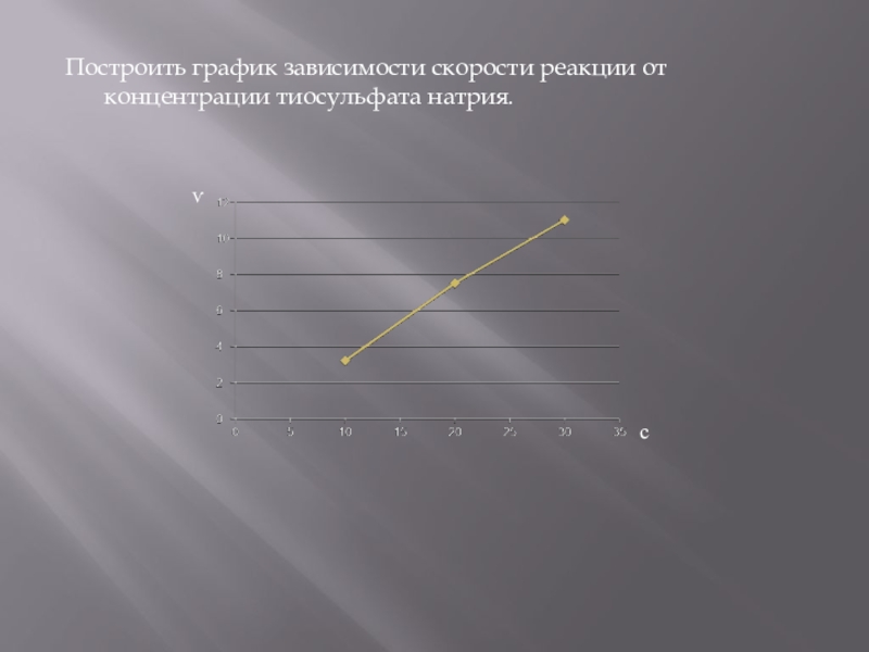 Слайд 9Построить график зависимости скорости реакции от концентрации тиосульфата натрия.