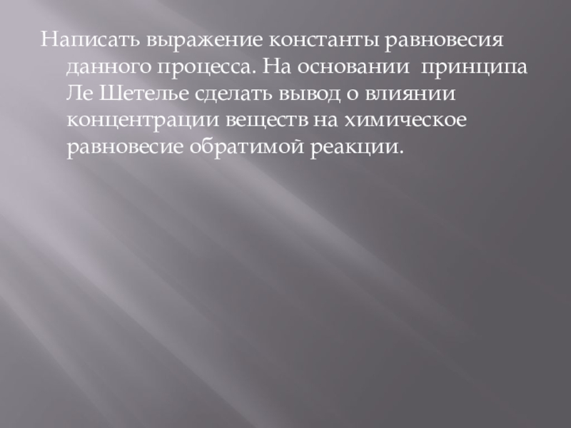 Слайд 16Написать выражение константы равновесия данного процесса. На основании принципа Ле Шетелье