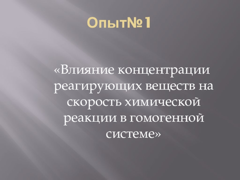 Опыт№1 «Влияние концентрации реагирующих веществ на скорость химической реакции в гомогенной системе»