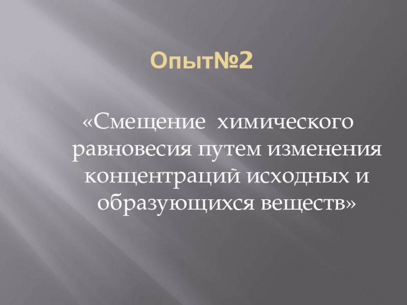 Опыт№2«Смещение химического равновесия путем изменения концентраций исходных и образующихся веществ»