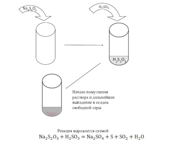 Na2S2O3	H2S2O3Реакция выражается схемойНачало помутнения раствора и дальнейшее выпадение в осадок свободной серы
