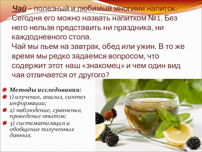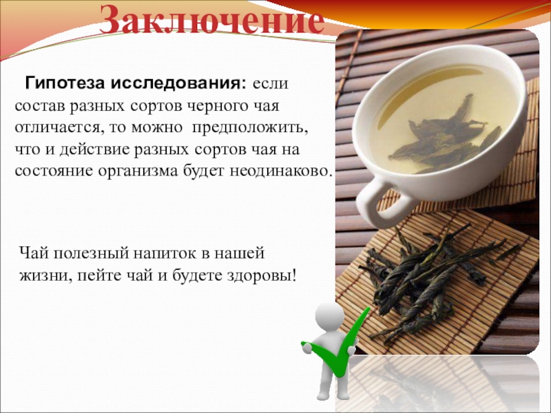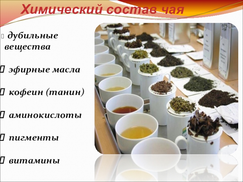 химический состав, сравнить разные сорта чёрного чая, дать рекомендации об употреблении этого напитка и его влиянии на здоровье человека.