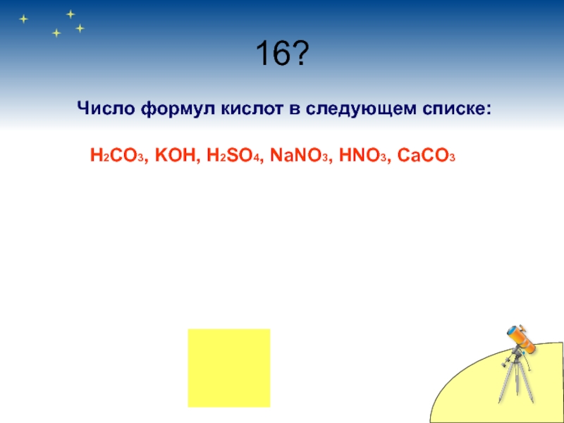 14)Na2CO3, 15)K3PO4, 16)H2S.