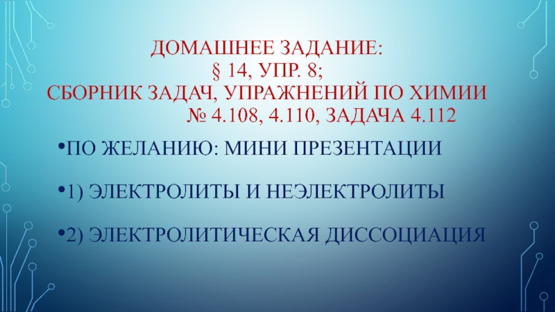 1) ЭЛЕКТРОЛИТЫ И НЕЭЛЕКТРОЛИТЫ