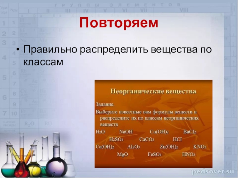 Закрепить и обобщить основные знания по теме «Основные классы неорганических