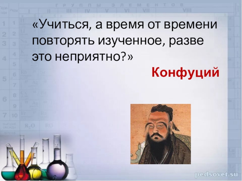 Слайд 3«Учиться, а время от времени повторять изученное, разве это неприятно?»