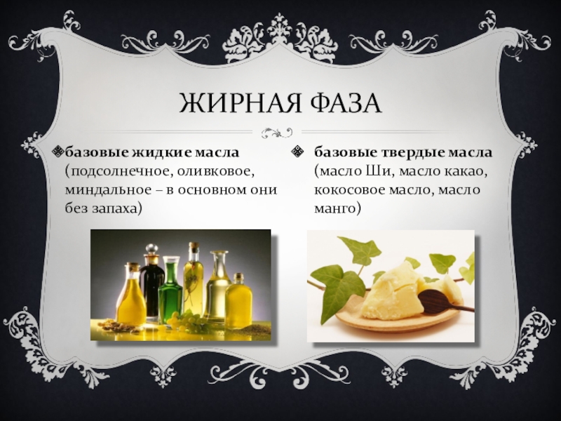 базовые твердые масла (масло Ши, масло какао, кокосовое масло, масло манго)