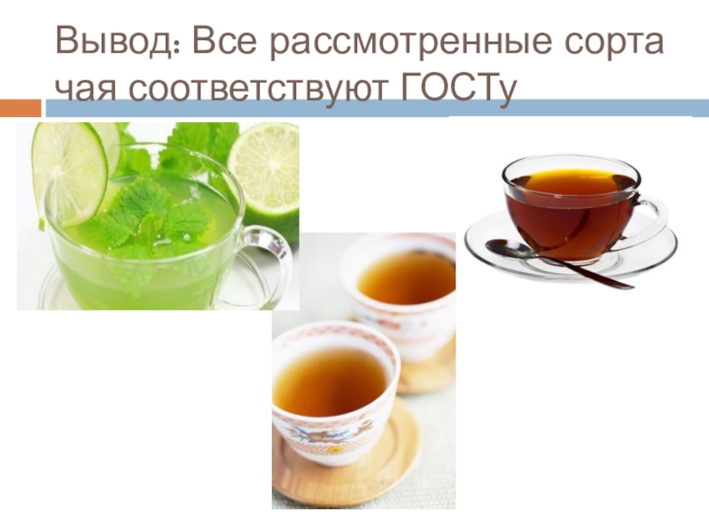 Вывод: Все рассмотренные сорта чая соответствуют ГОСТу
