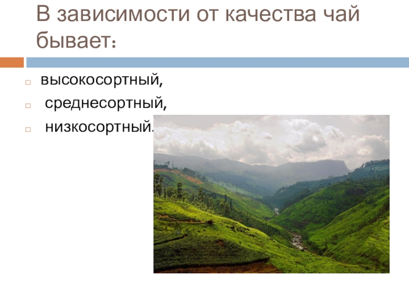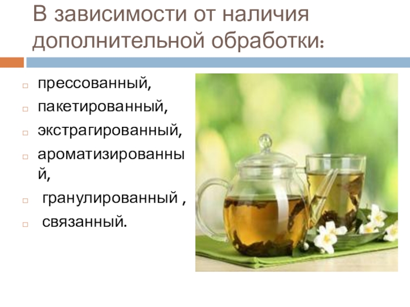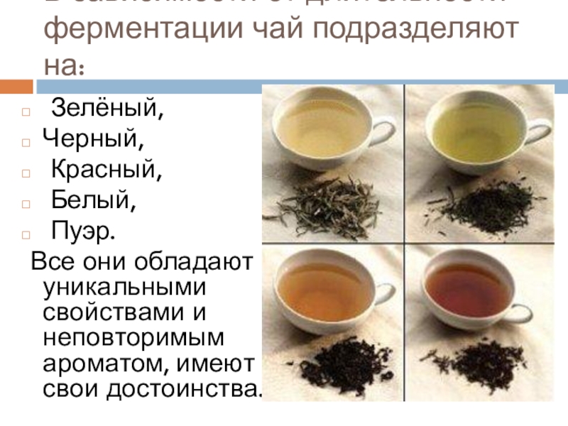 Слайд 13В зависимости от длительности ферментации чай подразделяют на: