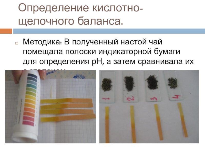 Методика: В полученный настой чай помещала полоски индикаторной бумаги
