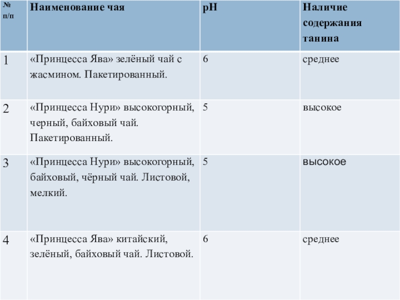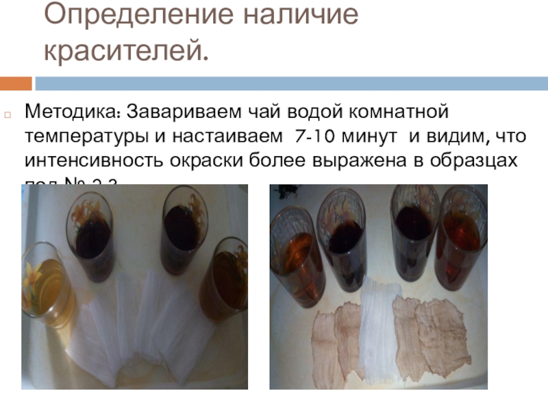 Методика: 1) В фарфоровую чашку помещаем 0,1 чая, добавляем 1-3