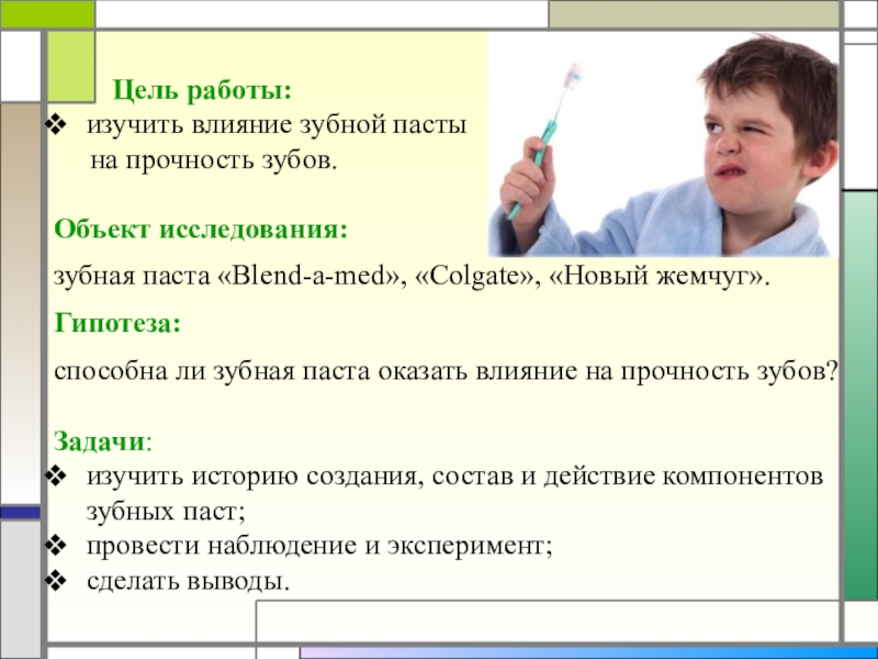 2. Подобрать оптимальный вариант зубной пасты, которая будет максимально полезна для вас.