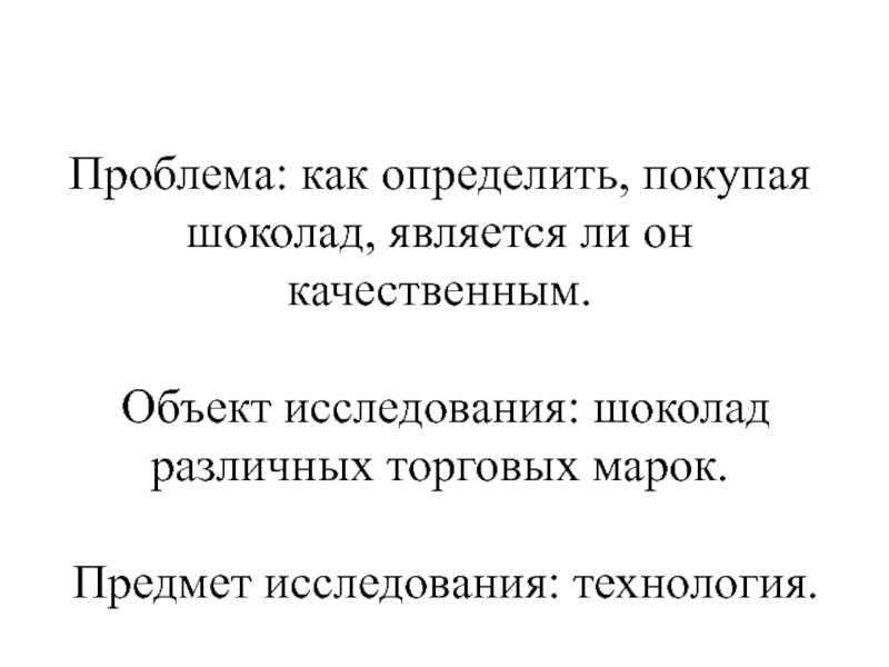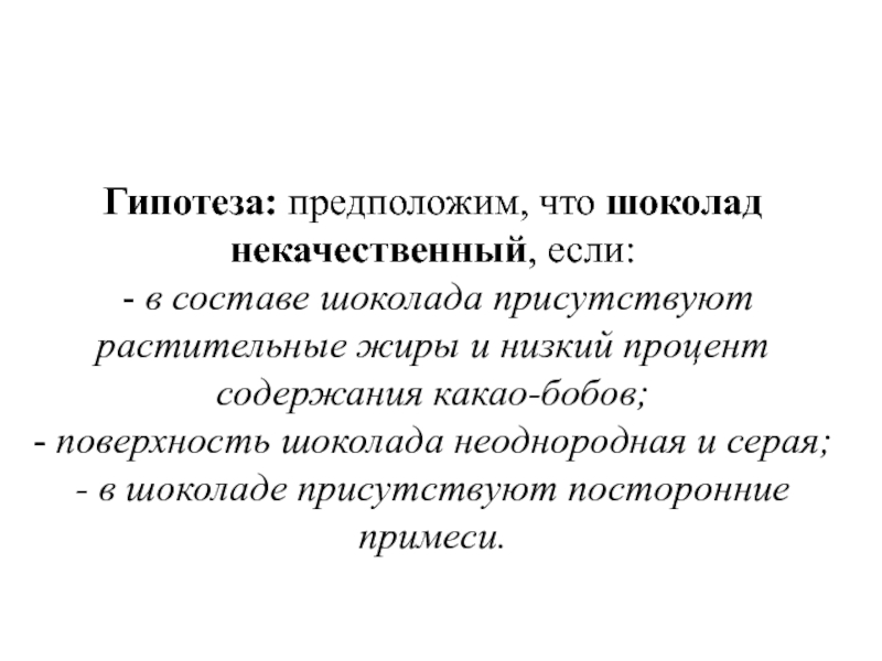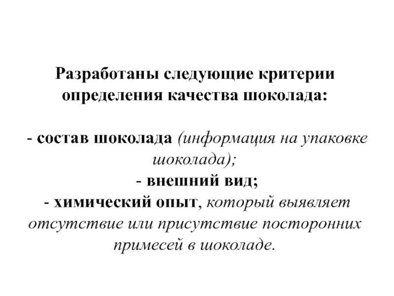 «Исследование качества шоколада на наличие или отсутствие примесей»: