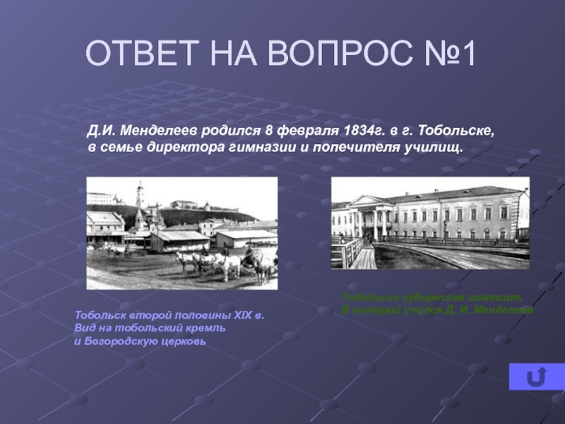 Д.И. Менделеев родился 8 февраля 1834г. в г.