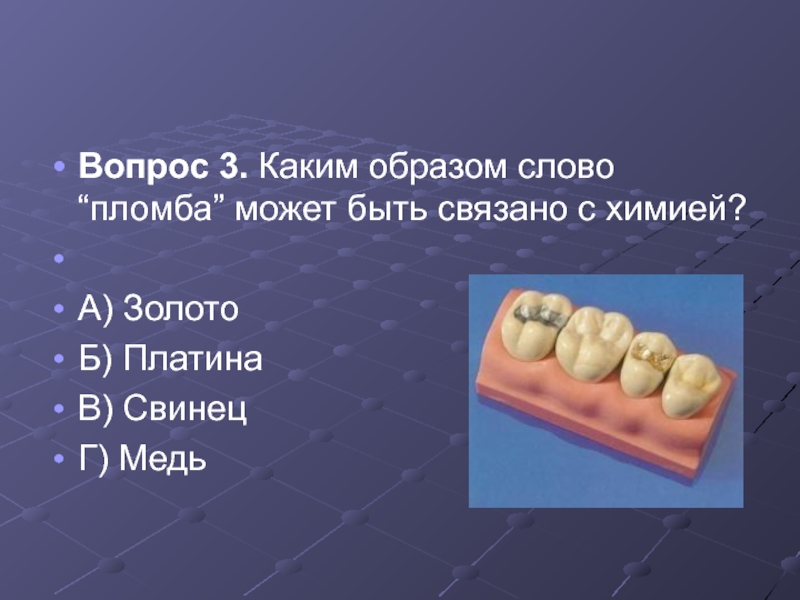 Вопрос 3. Каким образом слово “пломба” может быть связано с химией?