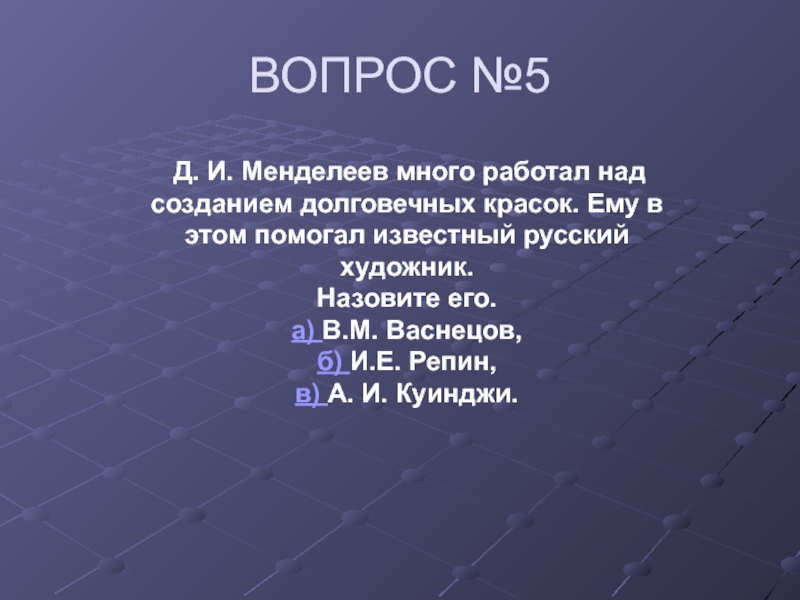 Д. И. Менделеев много работал над созданием долговечных красок.