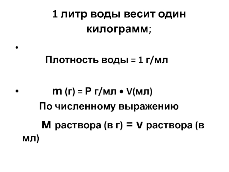 Слайд 111 литр воды весит один килограмм;
